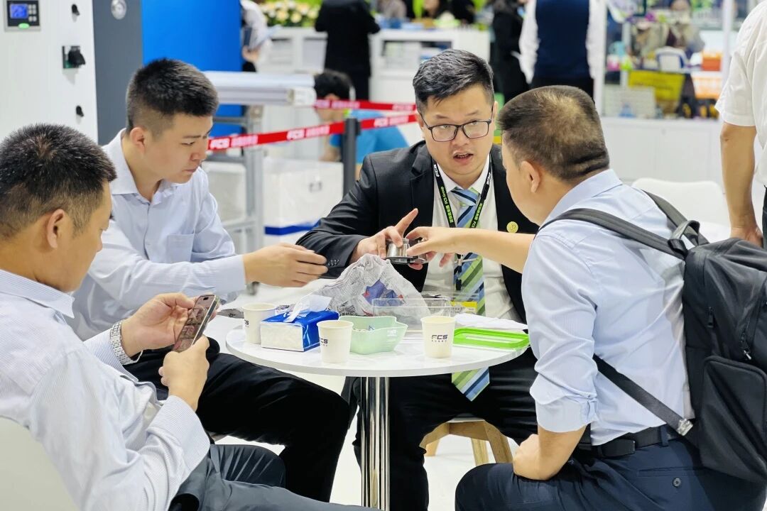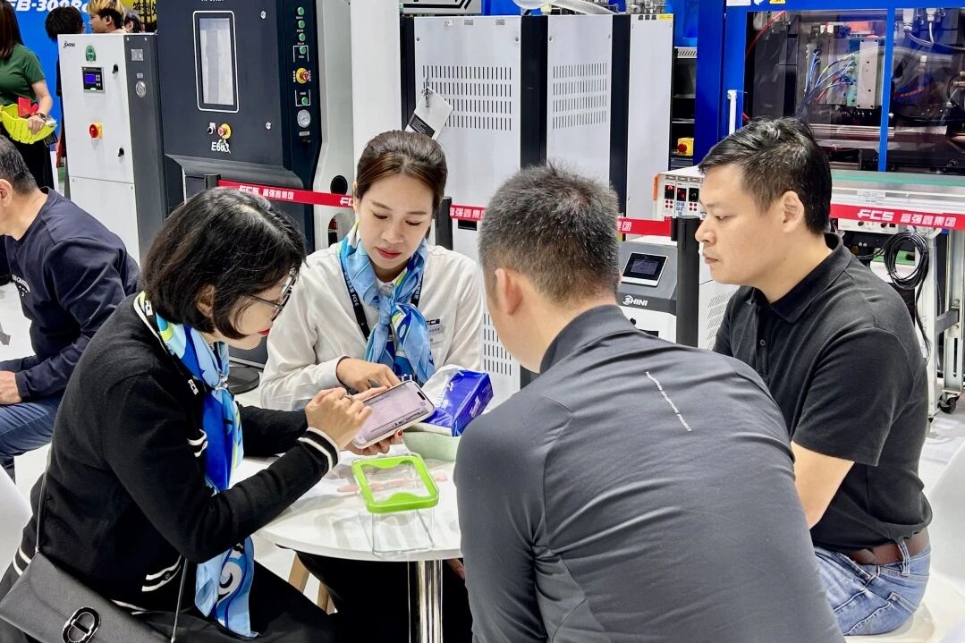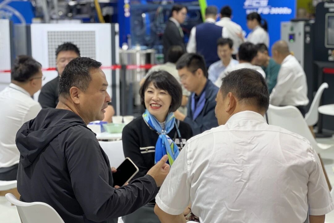FCS富強鑫集團於展位10C21展出多款機型,展現涵蓋單色與雙色、精密與節能、多材料應用的綠色成型解決方案。現場迎來了新老合作夥伴到展洽談交流。